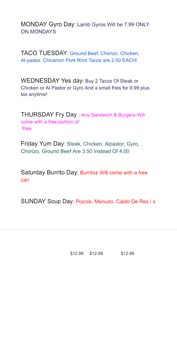 Cilantro, onion, hot or mild sauce. If You Wanna Add Cheese You Must Pay 0.50 For Each Item